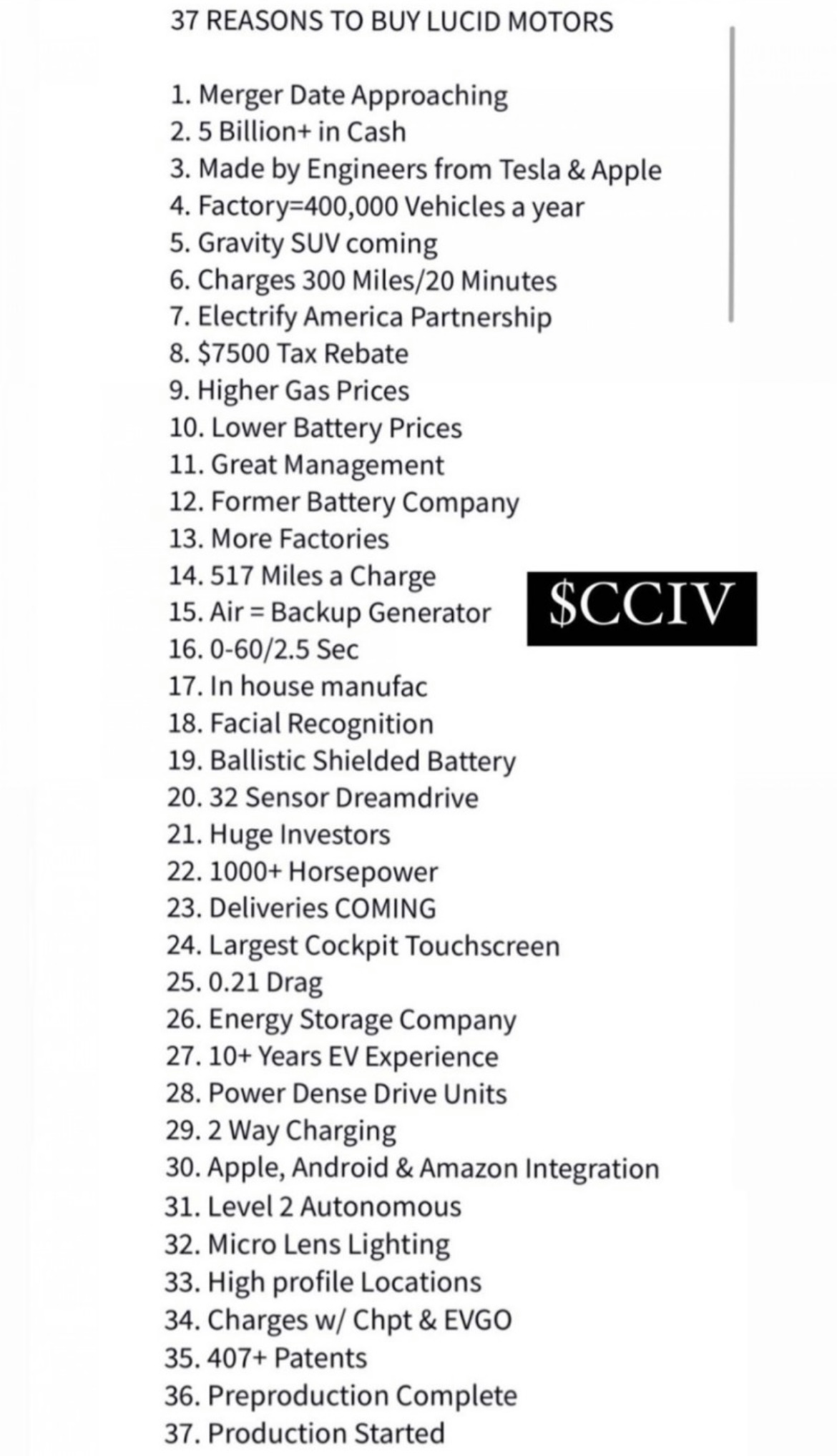 며칠 전 레딧에 올라온 루시드 모터스에 투자해야할 37가지 이유라며