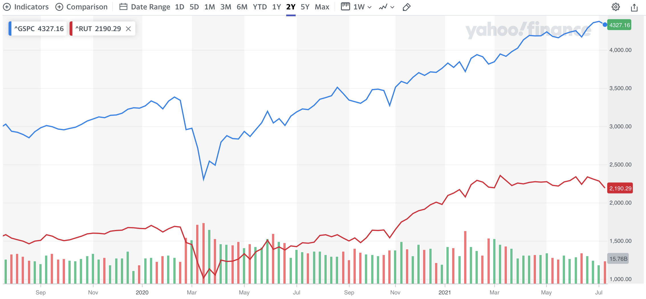 또한 델파변이 바이러스로 인해 중소형주들이 큰 타격을 받은 걸로 보인다.