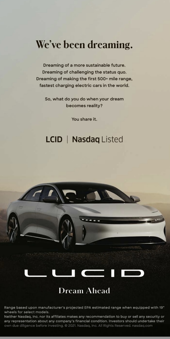 정보글은 아니고 7월 26일 루시드의 나스닥 상륙을 축하하며 글을 써봅니다.