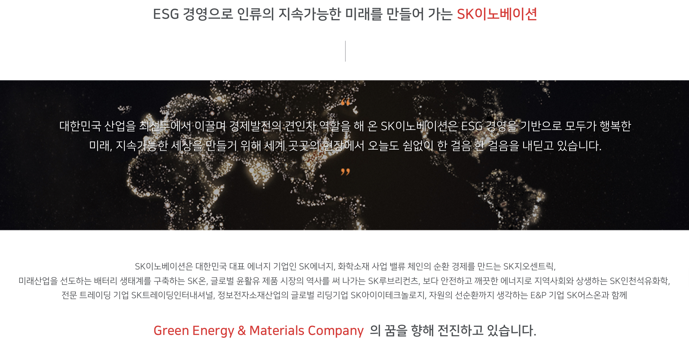 SK이노베이션은 Green Energy & Materials Company로서
