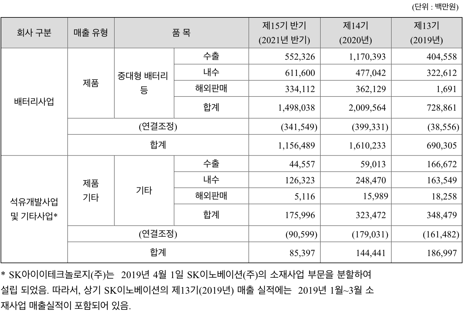 소재사업 그리고 석유개발 사업 및 기타 사업 1%로 구성되어 있습니다. (2021년 반기 기준)