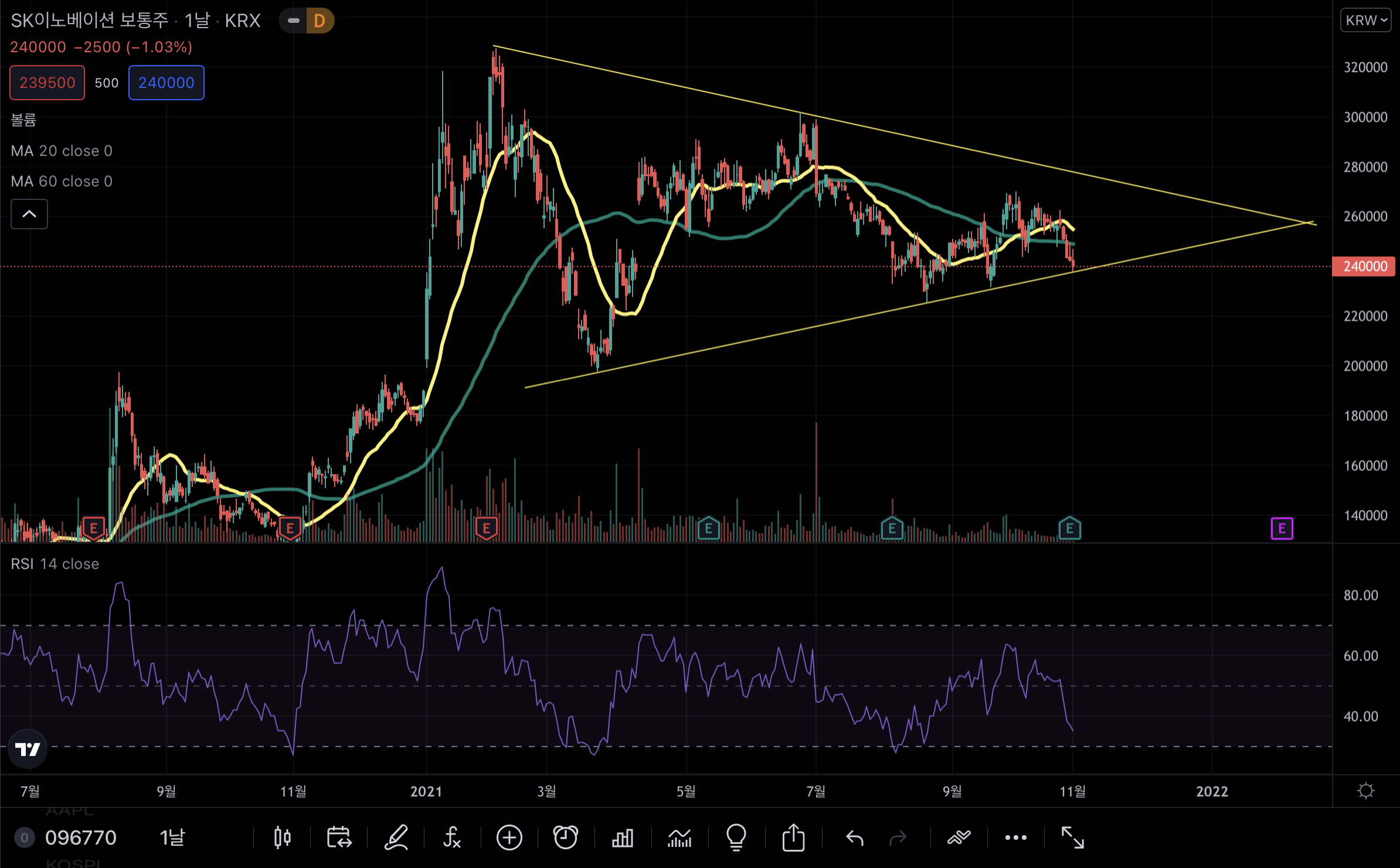 RSI도 적정라인안으로 들어오고 있고 지지라인만 버텨준다면 3분기 실적 호황과 배터리 사업 및 친환경 포트폴리오